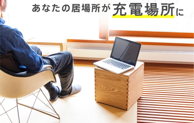 リモートワークでパソコンの電池が少なくなった時にも、タブレットで映画を観ていて電池がなくなってきた時にも、qb(キューブ)があれば居心地のよい場所から離れることなく充電を行うことができます。