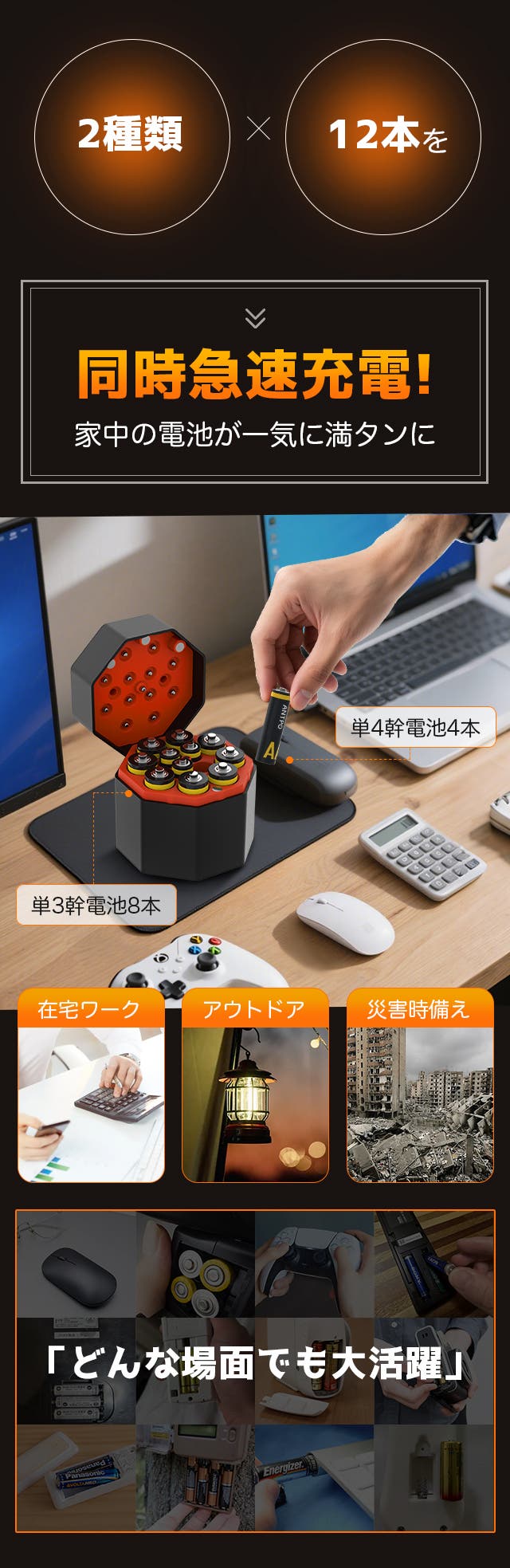 - 【単3&単4を12本同時充電】リモコンもおもちゃもマウスも。もう電池切れに悩まない!