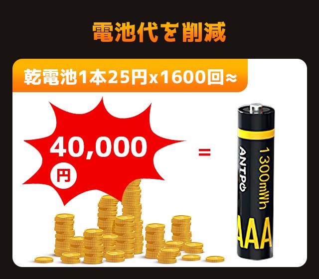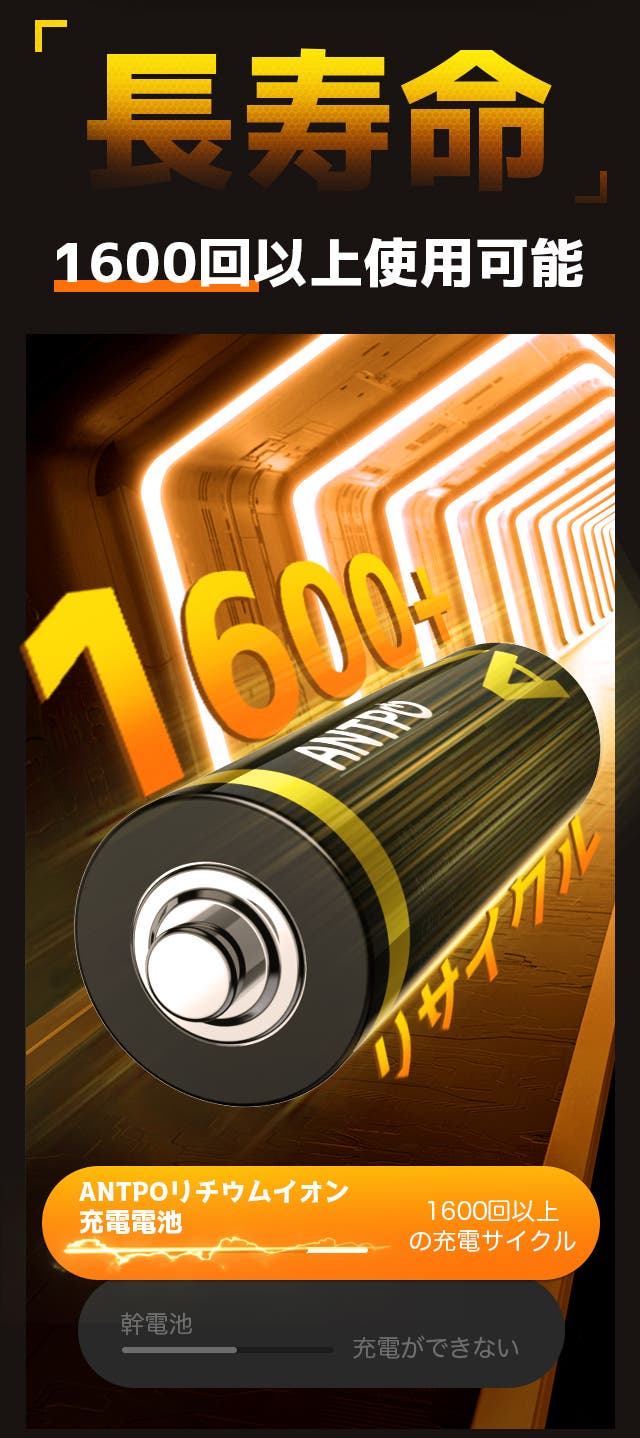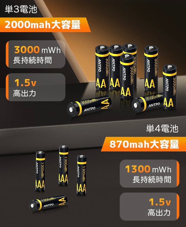 - 【1600回以上繰り返し充電可能】1.5V高出力&3000mWh大容量。経済的で環境にも優しい