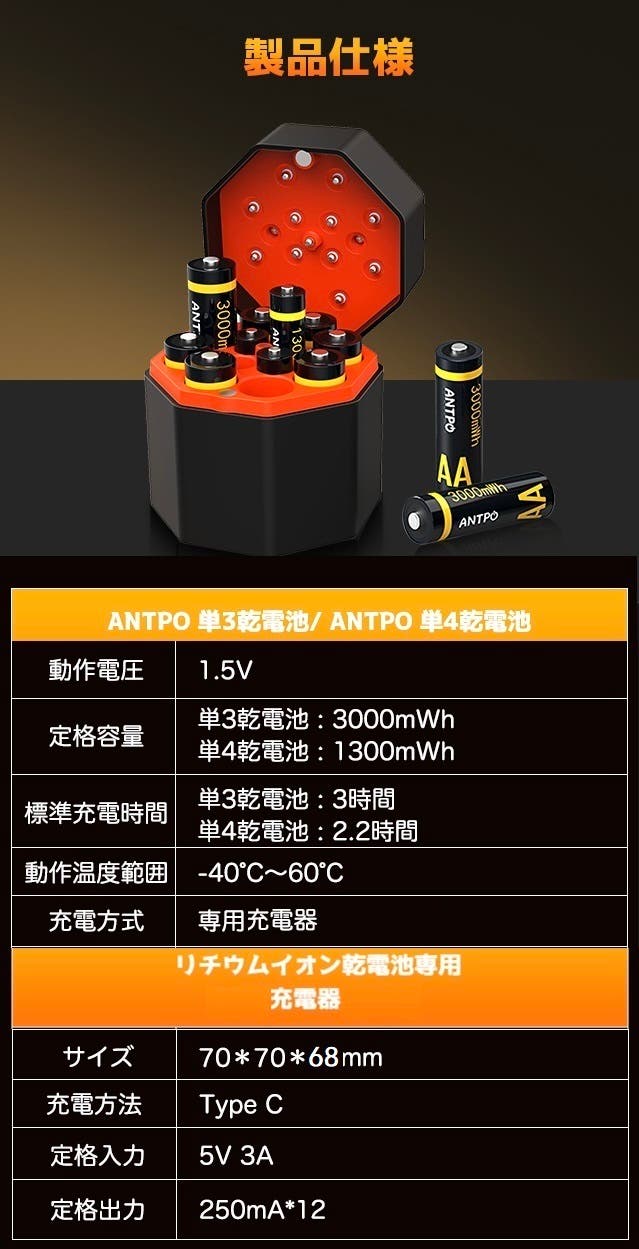 【超早割・限定70名様】ANTPO充電電池セット×2