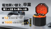 1度に最大12本(単3・単4両対応)を同時充電でき、繰り返し約1600回使用可能。大容量でストックできるうえ、充電と収納が一体となった設計により、必要なときすぐ取り出せる便利性を実現しました。災害時の備えとしても役立ち、日常から非常時まで幅広く暮らしをサポートします。