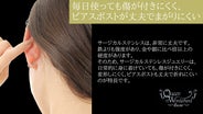 耳元に密着するタイプなので、輪郭の中心あたりで目に入りやすいのが特長です。 着脱が簡単で安定しやすいので、ピアス穴をあけたばかりの方でも着けやすいです。