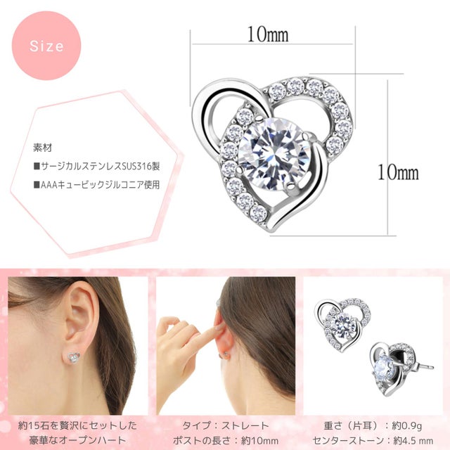【マクアケ先行販売】オープンハートステンレスピアス 【BA17】×1ペア