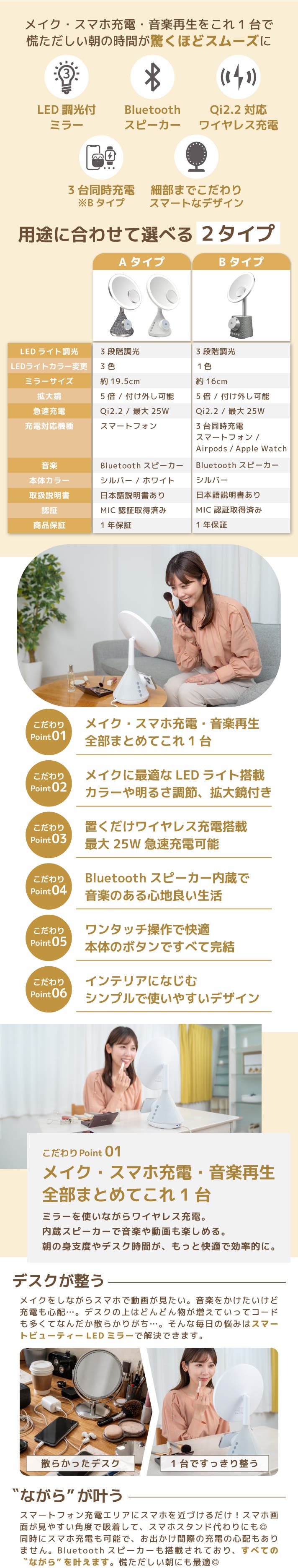 多くの女性が、「動画を見ながらメイクしたい」「音楽を聴きながら支度したい」「スマホを充電しながら準備したい」といったニーズを抱えています。