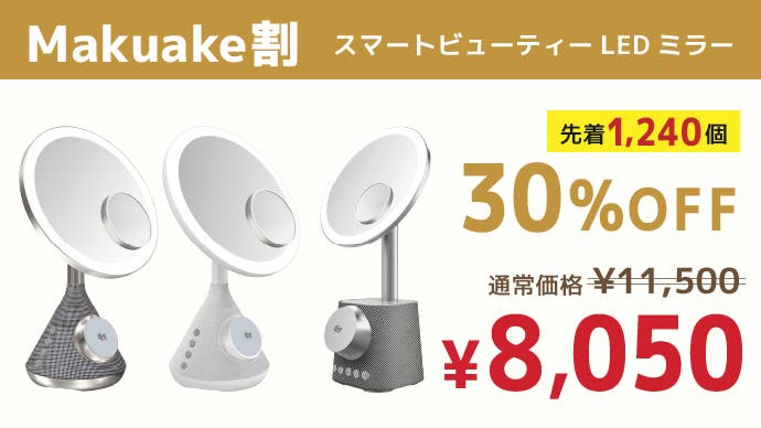 「Makuake(マクアケ)」は、実行者の想いを応援購入によって実現するアタラシイものやサービスのプラットフォームです。このページは、 プロダクトカテゴリの 「メイク・スマホ充電・音楽再生 全部これ1台! 暮らしにフィットするLEDミラー」プロジェクト詳細ページです。