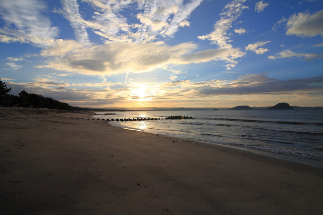 玄海国定公園に指定された浜崎海岸。海・山・川、自然の恵みいっぱいのこの土地は、太古の昔、万葉集に歌われた浪漫あふれるストーリーに満ちています。その昔、中国への旅立ちの際に、安全を祈願した神集まる島、「神集島」、宝当神社のある「高島」など、唐津湾を彩る島々の光り輝く移り変わりの様を是非ご覧ください。