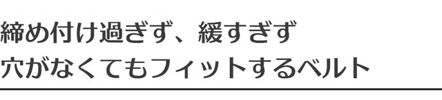 ベルトに穴がないので締め付け具合を好みに合わせて調節することができるストレッチベルトが締め付けすぎず、緩すぎずの絶妙なフィット感で着用することができます。
