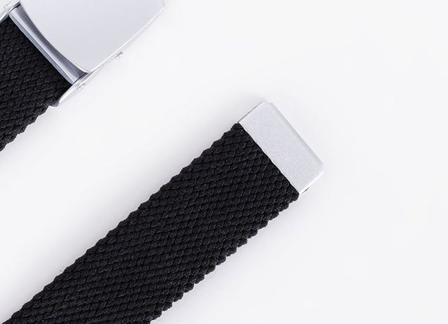 バックルをプラスチック素材ではない金属製バックルを使用し、耐久性と重量感を上げました。落ち着いた雰囲気とブラックとシルバーの2色から好みに合わせてお選びいただけます。