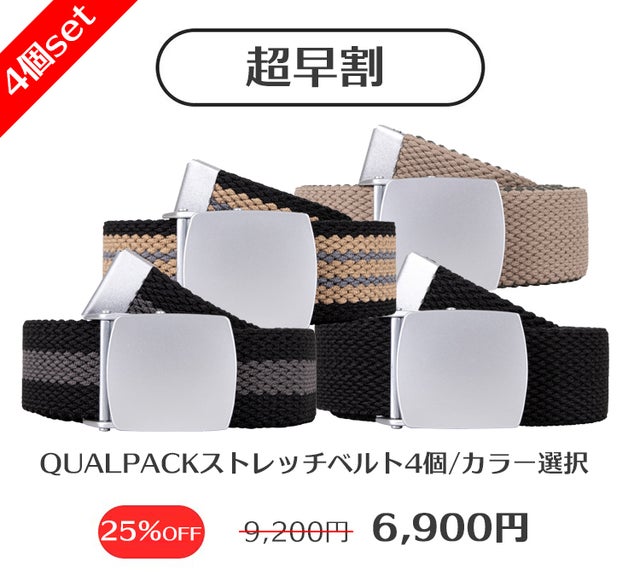 【超早割】QUALPACKストレッチベルト 4個セット 100名様限定