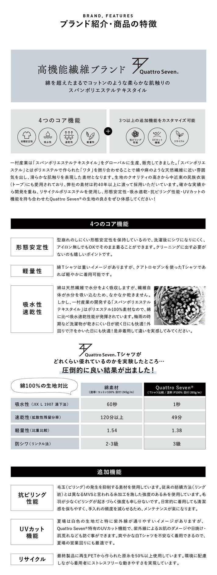- 吸水・速乾・軽量・防シワの機能にコットンのような風合いを表現
