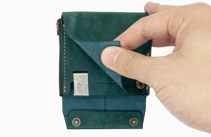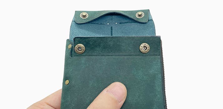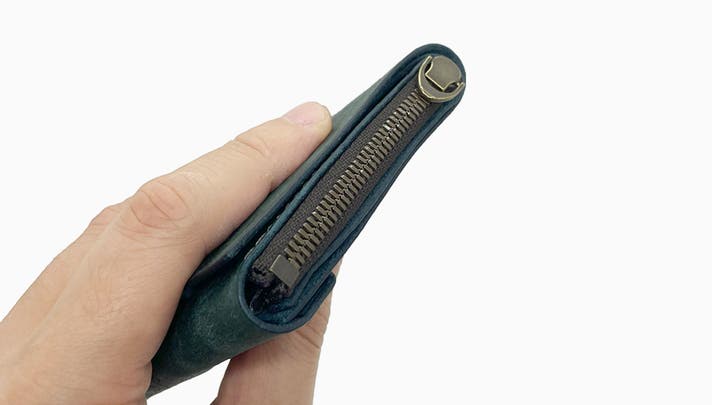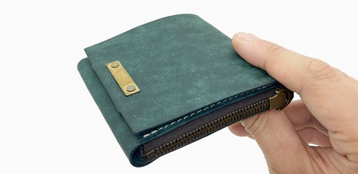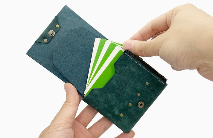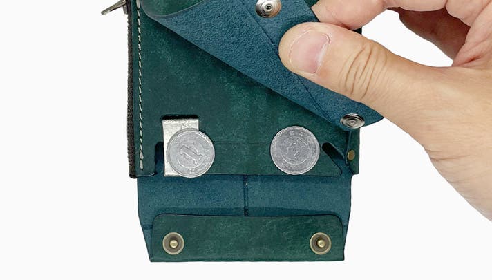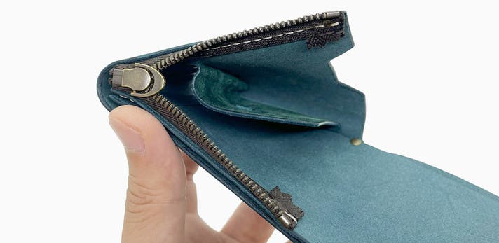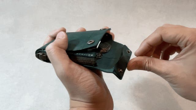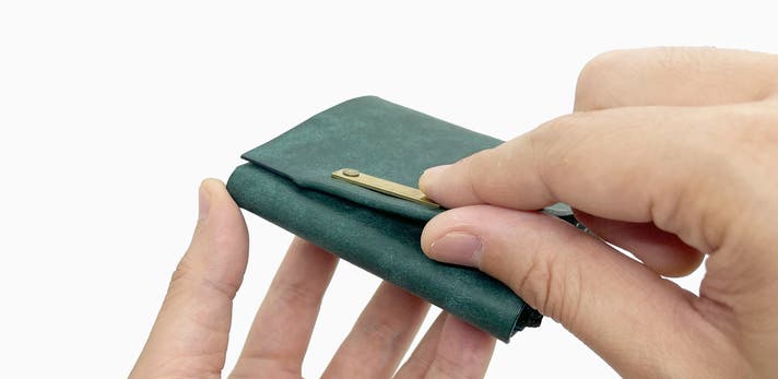 - 「錫」を用いたギミックでコンパクト財布の弱点である窮屈な小銭操作を見事に解消