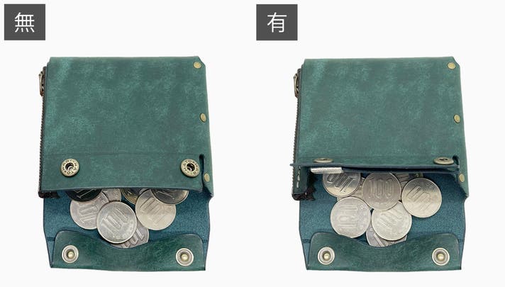 コインポジション時の「明るい視界&広々空間」を確保、僅か10数mm広いだけで環境が一変する、コンパクト財布の弱点である窮屈な小銭操作を見事に解消