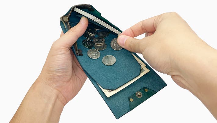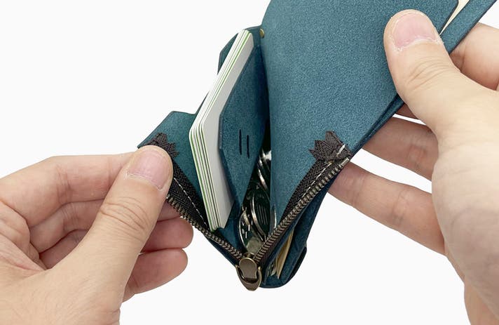キャッシュレス決済の代表格クレジットカードに特化したスタイル、交通系カードはファスナーを閉じたままでも使用可能