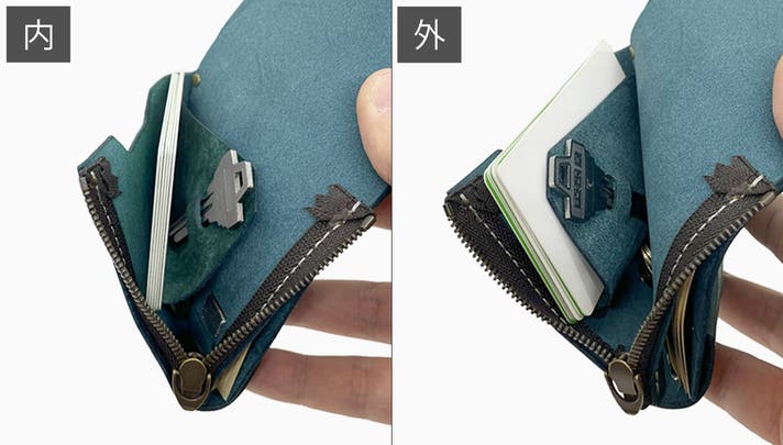 カード6枚ほどではスッキリと内側に、カード8枚以上では外側へとライフスタイルに合わせて選べる