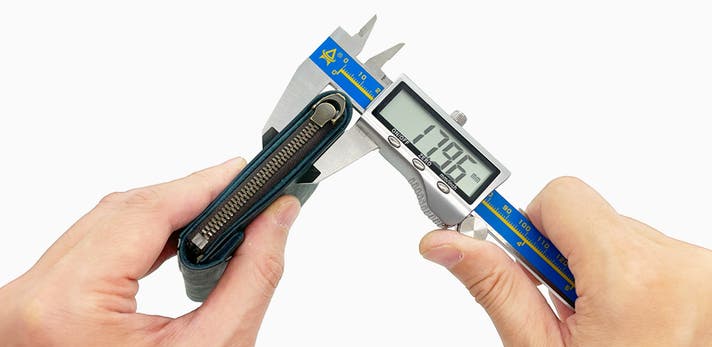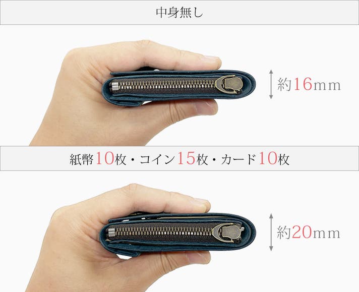 ※日常使いに十分な紙幣7枚・カード6枚・コイン10枚・鍵1本で厚さ約18mm