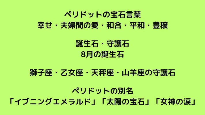 ペリドットは明るくポジティブな意味をたくさん持っている石です。