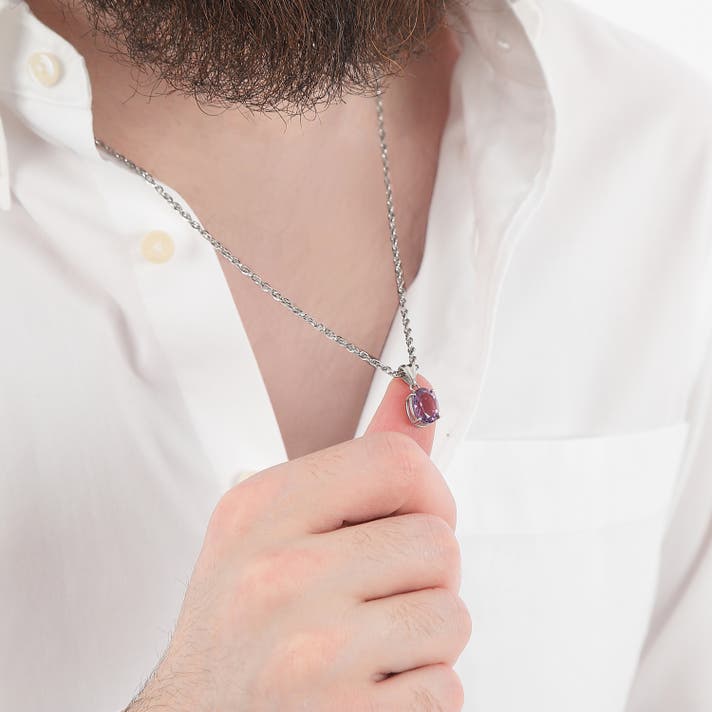 平均約7ct(カラット)ほどとしっかりとしたボリュームのストーンを、シンプル枠にセッティングし、ペンダントを着用している際に、石全体が見えるため、ひときわ存在感を放ちます。