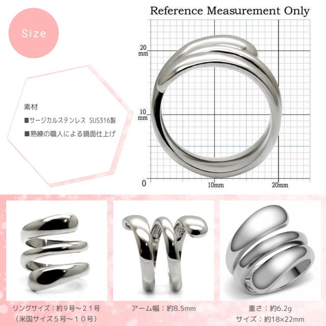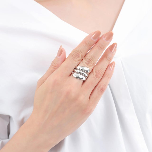 ぷっくりと厚みのあるプランプリングは、引っかかりなく良い着け心地。洗練されたスパイラルデザインで都会的でクールな印象になります。エレガントスタイルにもカジュアルスタイルにもどんなスタイルにも合い、お洋服の色を選ばないシンプルデザインでコーディネートしやすいリングです。