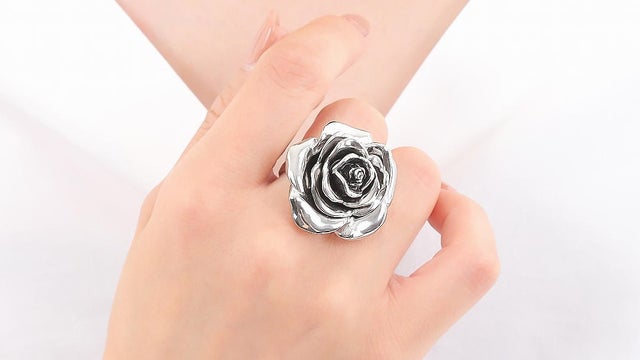 熟練の職人が薔薇の花びら一枚一枚を表現したエレガントなボリュームリング