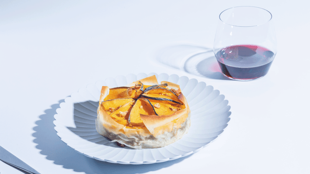 かぼちゃは、ポタージュのように乳成分を加えることでリッチかつコクがプラスされます。そのポイントをいかし、コクのバランスと粘度を調整。そして、かぼちゃのスライスをのせることで、見た目のコントラストを演出するだけでなく素材本来の味をプラス。食感の楽しさと香ばしさがやみつきになるくるみは全体を引き締めることに。