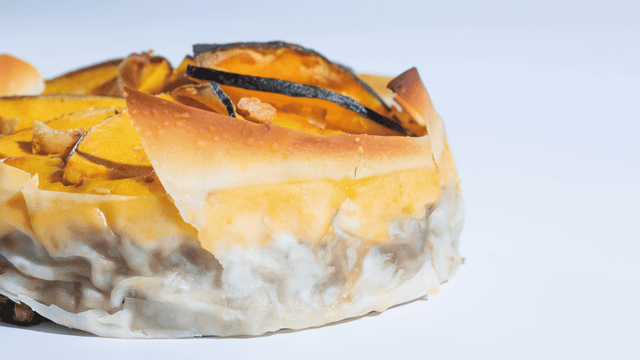 【原材料】カボチャ、生クリーム、牛肉、玉葱、牛乳、筍、卵、醤油、バター、はちみつ、片栗粉、くるみ、生姜、タピオカスターチ、パン粉、塩 ブラックペッパー、シナモン、皮(小麦、植物油脂、食塩、卵白粉/加工澱粉、酒精)