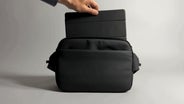 床に降ろしたり、両手でファスナーを開ける必要はありません。