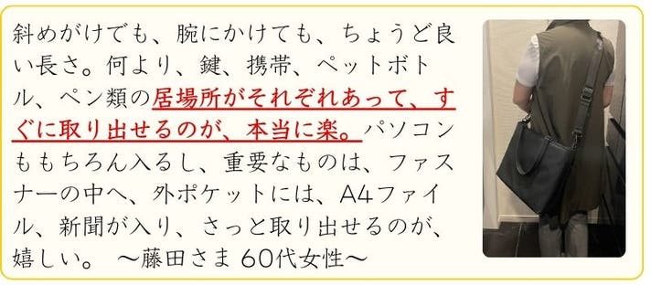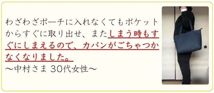 ガバッとバッグを広げなくても、サッと取り出し、パッと収納が可能です。