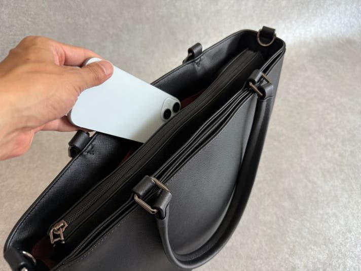 電車、バス、人混みでも周囲の視線を気にせず出し入れができます。
