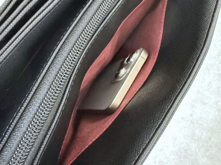 片方にスマホ、もう片方には財布を入れれば、レジでの会計もスムーズに。