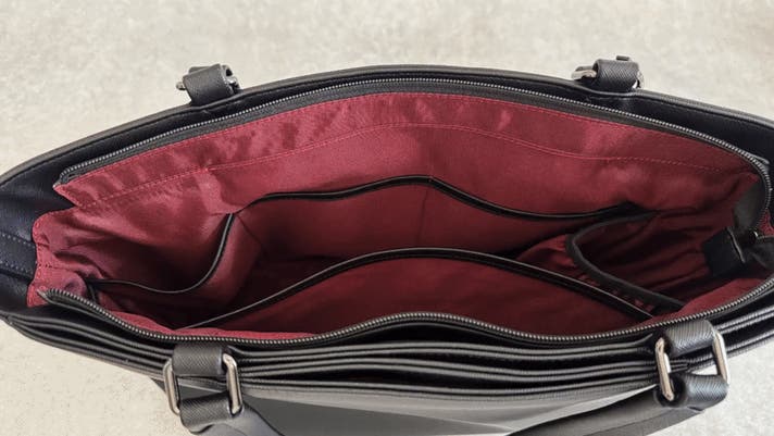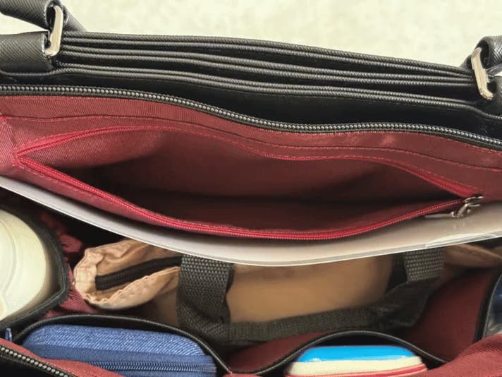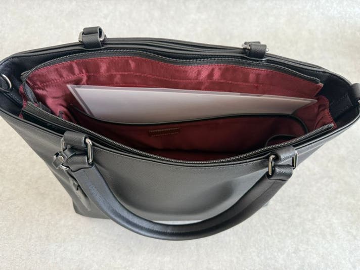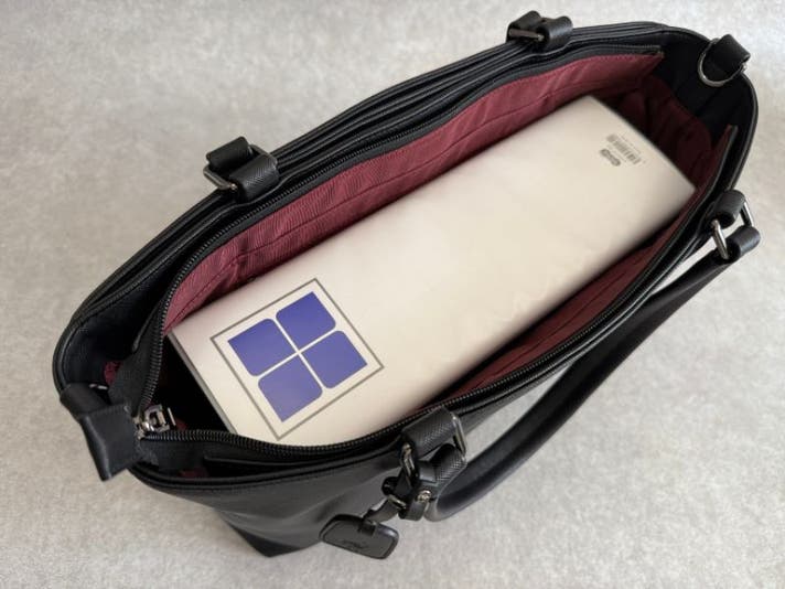 書類用の区切られた専用スペースに入れておけば、他の荷物につぶされて大事な書類が折れ曲がってしまう心配もいりません。