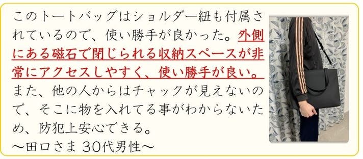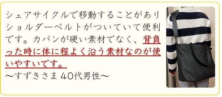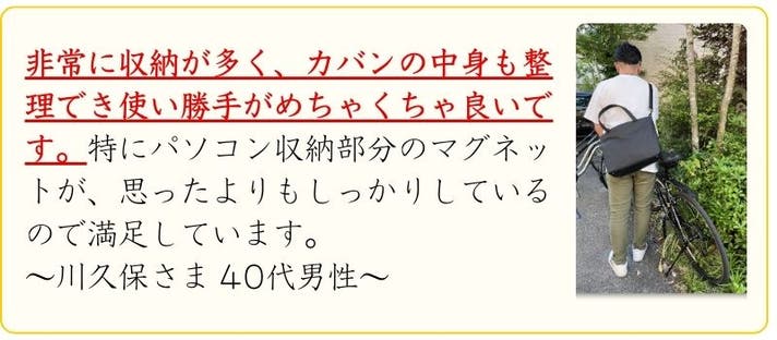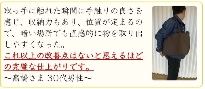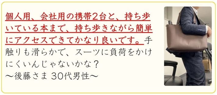 女性の通勤バッグのニーズをヒアリングしながら開発しましたが、男性にも使いやすいユニセックスな機能と仕様にしています。