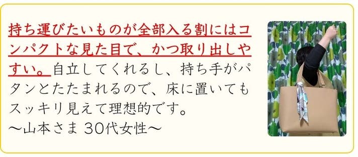 そんなときでも、バッグが自立するので、床に倒れて汚れる心配もいりません。