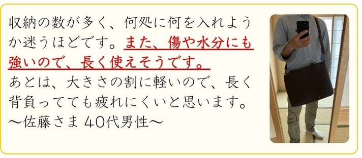 傷や汚れにも強いため、通勤、外出、出張と、あらゆる場面で活用してください。