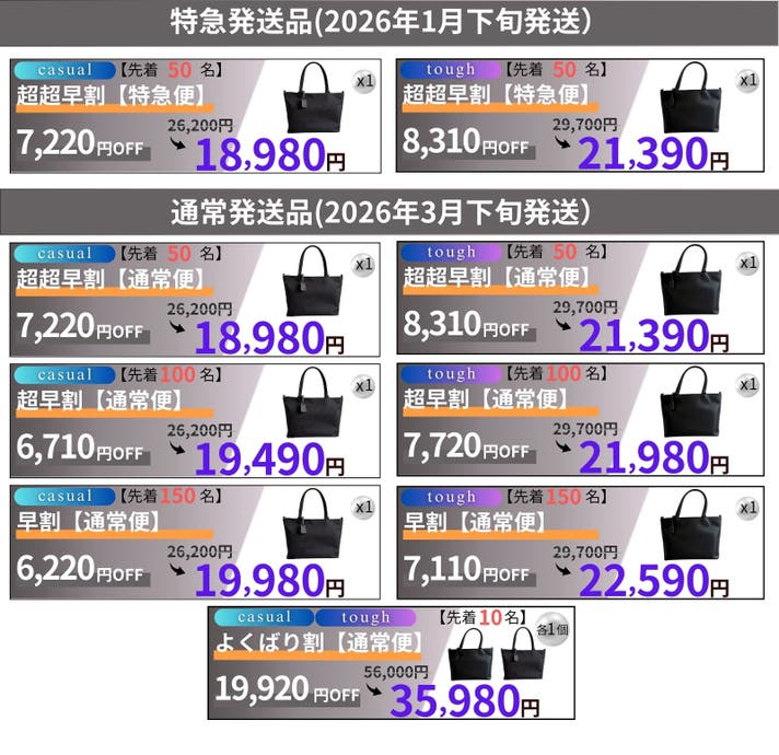 ※ 割引率は販売予定価格に送料を含む合計金額に対するものです。
