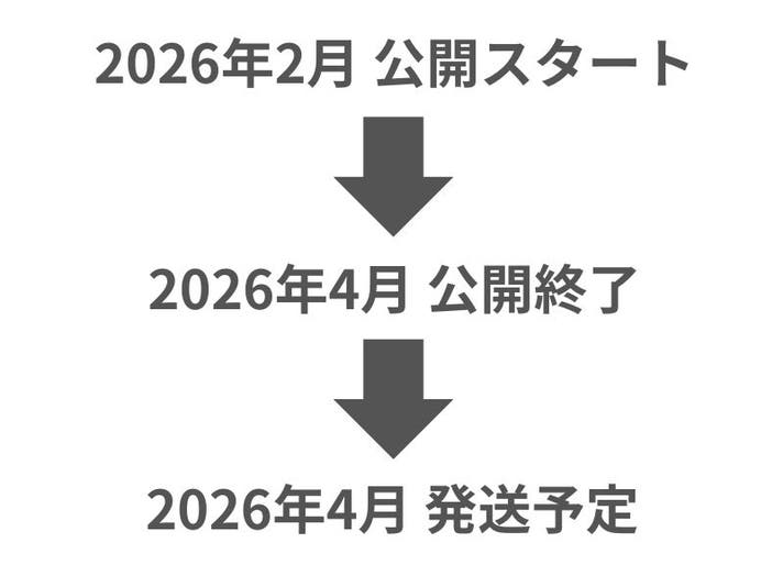 このプロジェクトはAll in型です。目標金額の達成に関わらず、プロジェクト終了日の2026年04月17日までに支払いを完了した時点で購入が成立します。