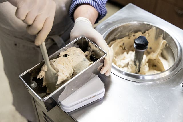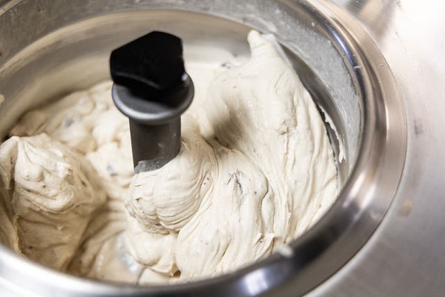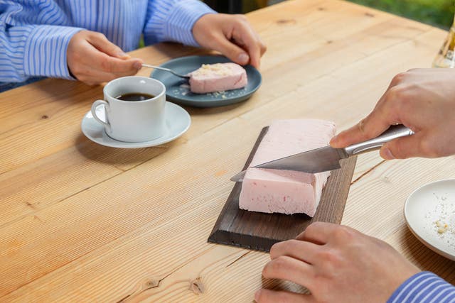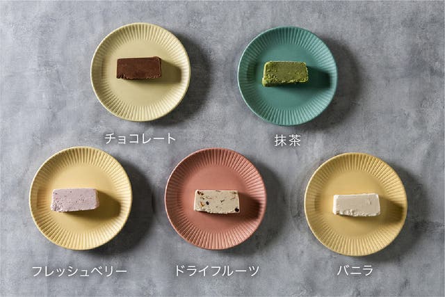 練り混ぜた生地をケーキ型に詰めて冷やし固めて作っています。食べる時はカップ型のジェラートのように、すくいやすいように溶かす必要がないので、劣化もしづらいです。