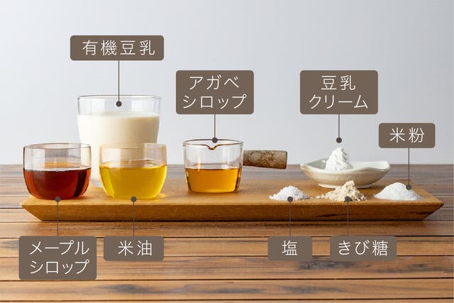 100%植物性なのにこんなに濃厚な秘密は、有機豆乳・豆乳クリームのコクとうまみ、そして米粉のしっとり感にあります。