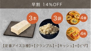 【早割14%OFF】アイス3本+クランブル3袋+キッシュ4個+ピザ4枚
