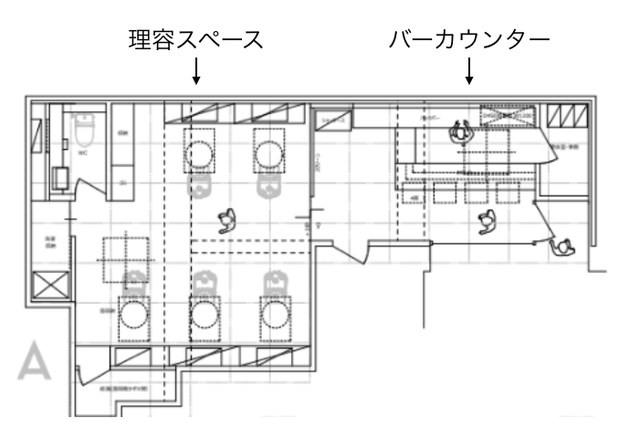 店舗については入り口から入るとバーカウンターがあり、奥に理容スペースを設けています。お客様には最大限リラックスをしていただくために。仕事の疲れを癒していただくために、大人の空間を演出させていただいております。