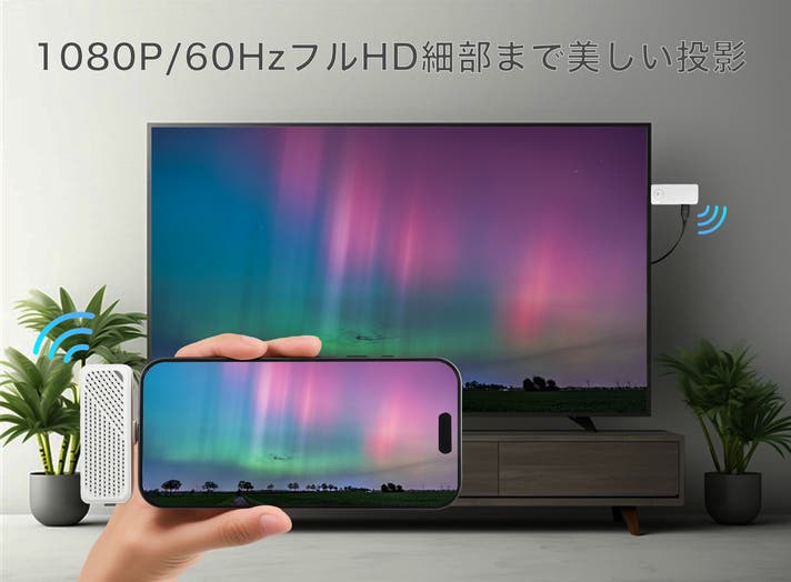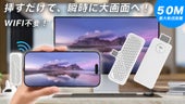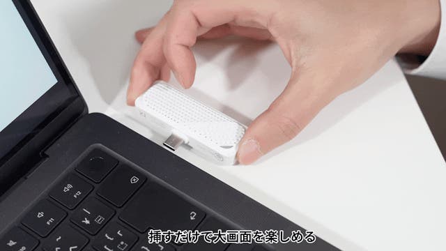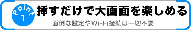 - 面倒な設定は一切不要。デバイスに挿すだけで、すぐに大画面へミラーリング。
