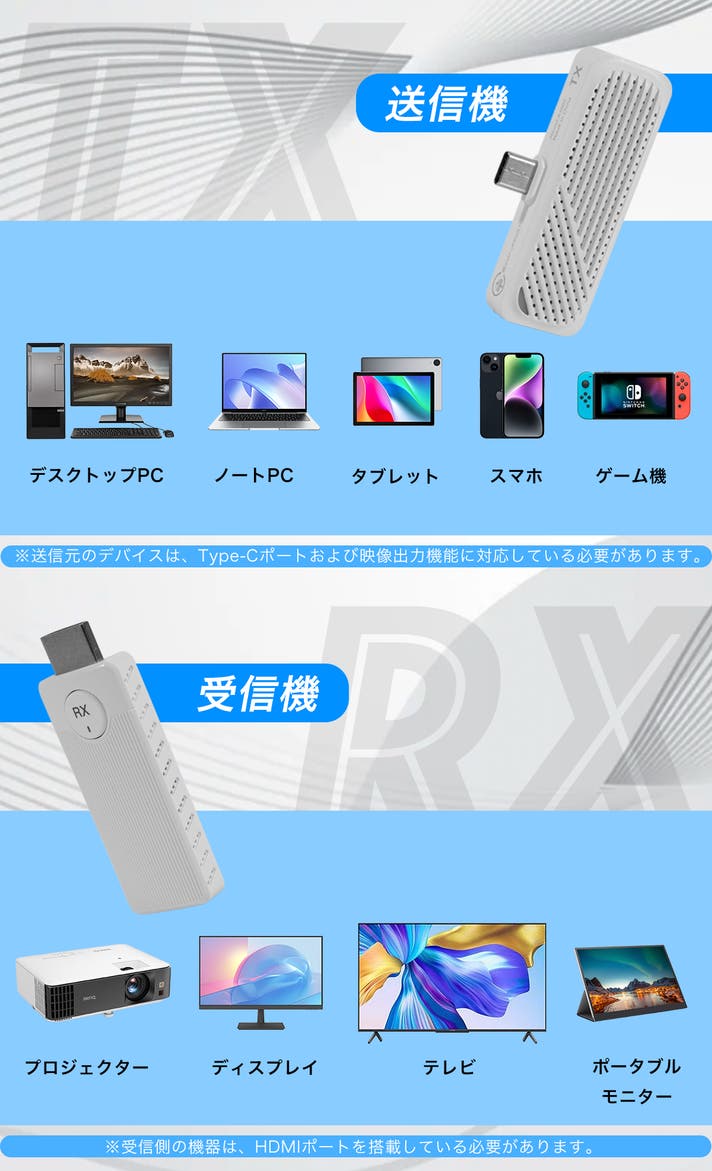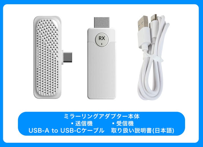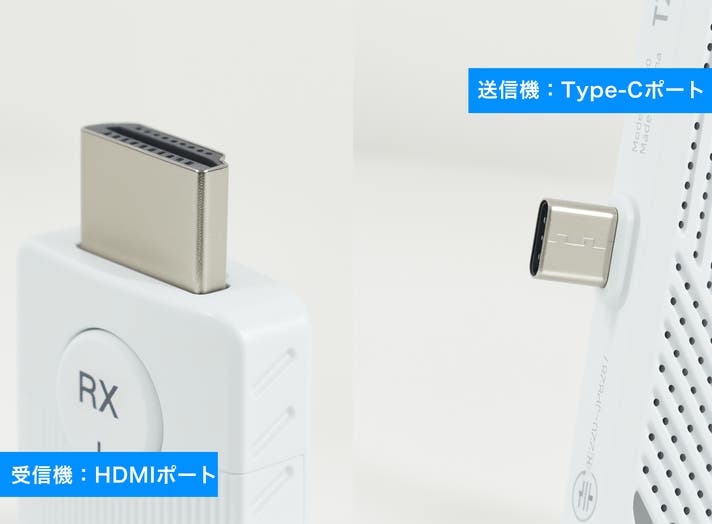 ミラーリングアダプターは、受信機にHDMIポート、送信機にType-Cポートを搭載。