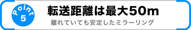 最新の高性能チップを採用し、最大約50mの長距離ワイヤレス伝送を実現。