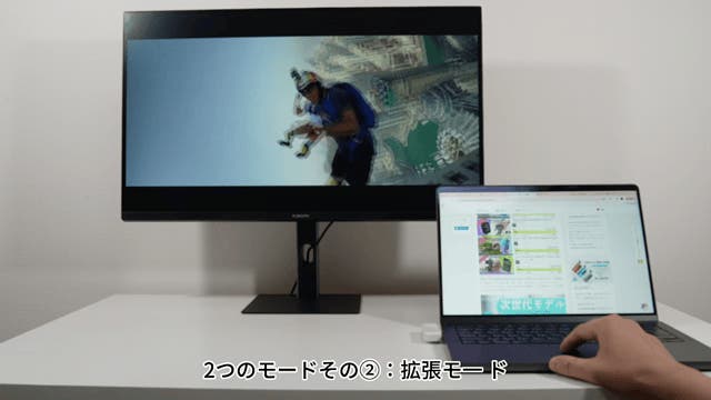 拡張モードでは、投影先のテレビやプロジェクターに別の画面を表示しながら、手元のパソコン画面を独立して操作できます。