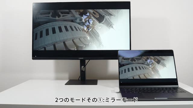 ミラーモードでは、送信元デバイスの画面を受信先の画面にそのまま表示し、同じ内容を映し出す一般的なミラーリングが可能です。