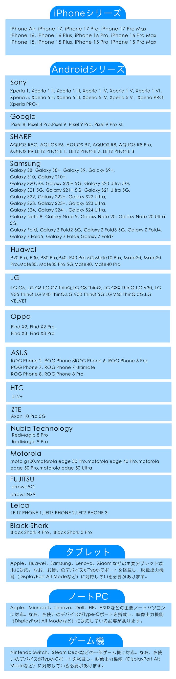 ※本リストに掲載している対応機種は一部となります。