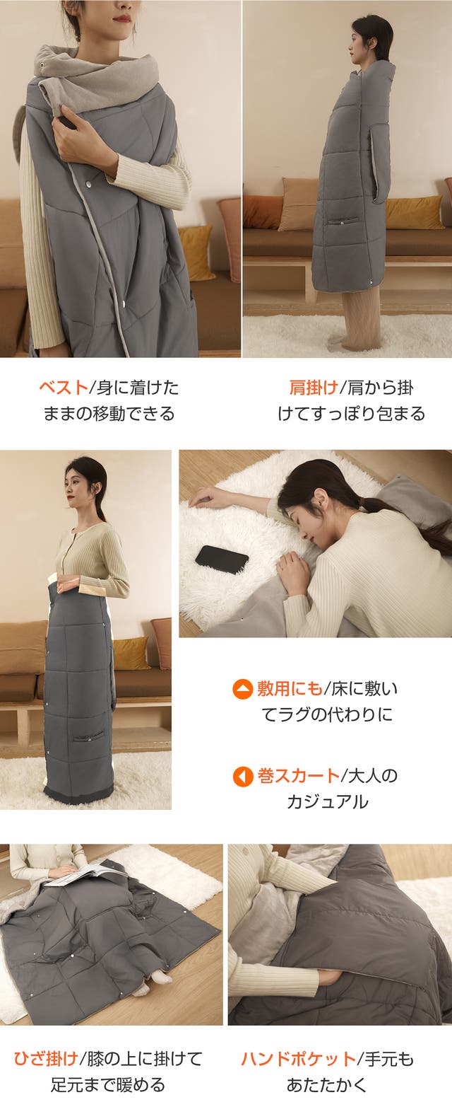 - 多様な着用方法!ひざ掛けや肩掛け、腰巻き、電気敷毛布として使用、撥水効果が嬉しい!