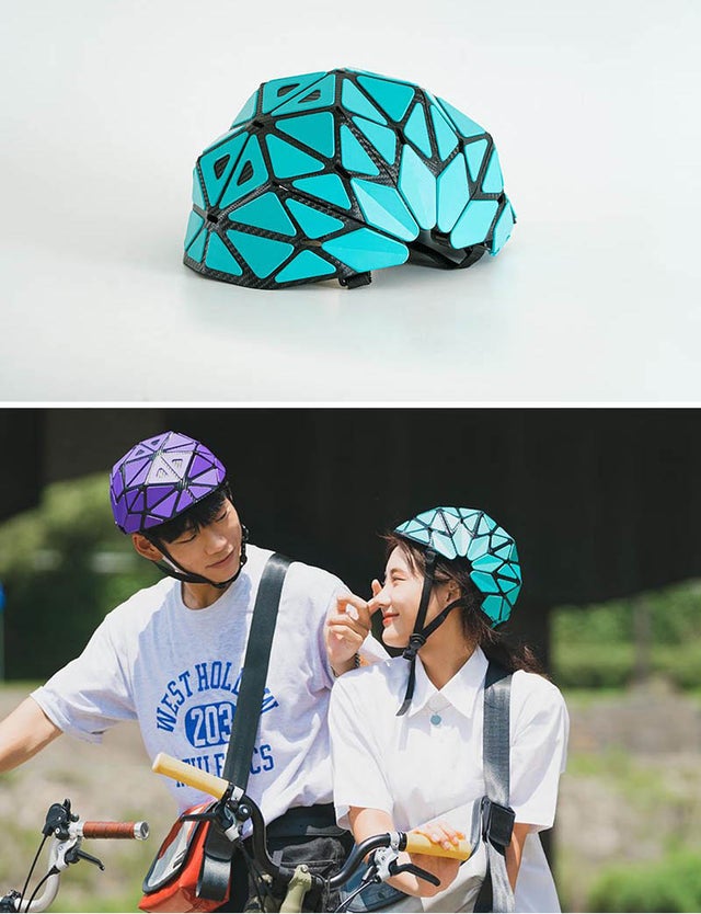 紙のように折りたためるフォールディングラバーヘルメット