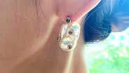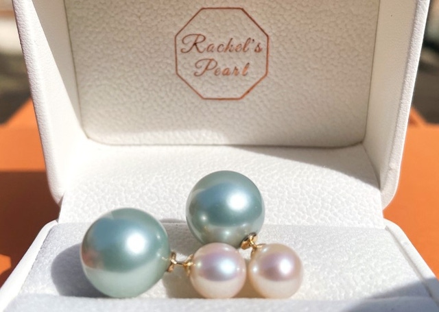 このイヤリングのグレーカラーパールクラッチは、Rachel’s Pearlが特別に開発したクラッチ用核真珠です。