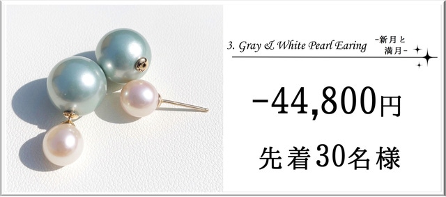 1.グレー&ホワイトパールピアス 新月と満月