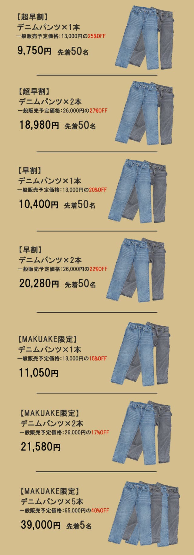 【MAKUAKE限定】デニムパンツ×5本